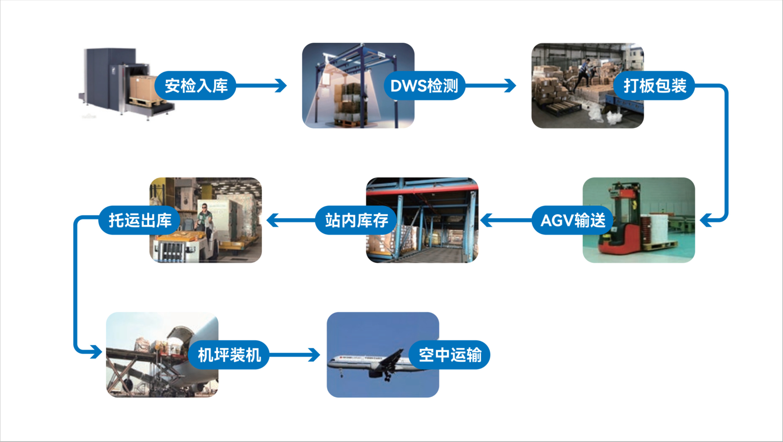 为航空货站提供覆盖进出港、打板包装、库存、输送、查验、报关报检等环节的货运系统建设,并通过数字化系统为航空物流业务的运营、监管、决策提供整体解决方案。通过为货站、地服、货代、航司、局方等航空物流各参与方赋能,达到降本增效、提升产业服务力的目标。
