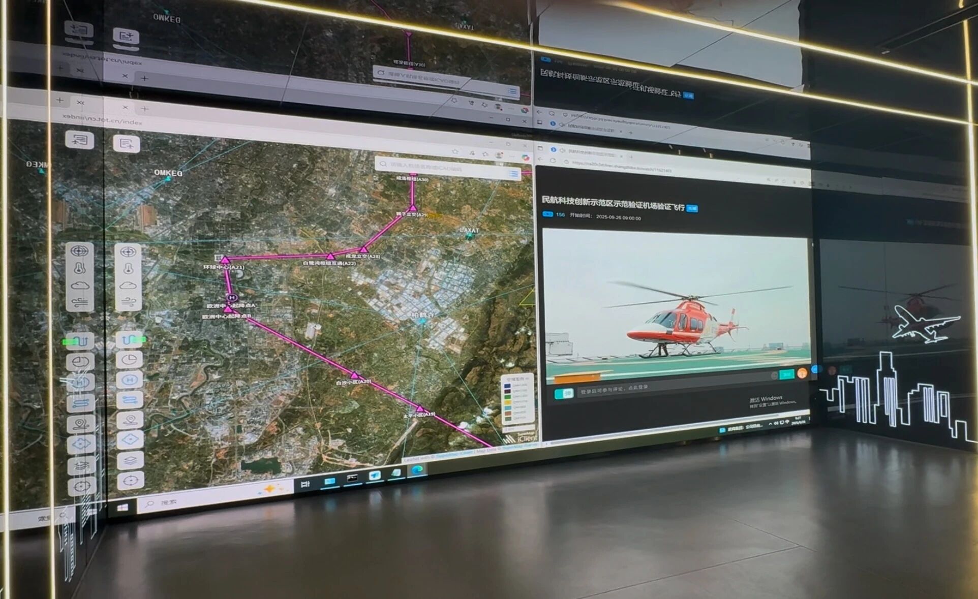 负责本次验证试飞的民航二所工程技术团队在任务起降点完成了全方位飞行服务保障设备的部署:其航站楼二楼配备了低空飞行服务保障系统、亿飞伴地面站、数字化远程塔台与VHF电台、气象自观测设备;直升机上搭载了便携式北斗多模机载终端和亿飞伴电子飞行包(EFB);起降点还部署了两套通航ADS-B地面站,构建起立体化的飞行保障网络。
