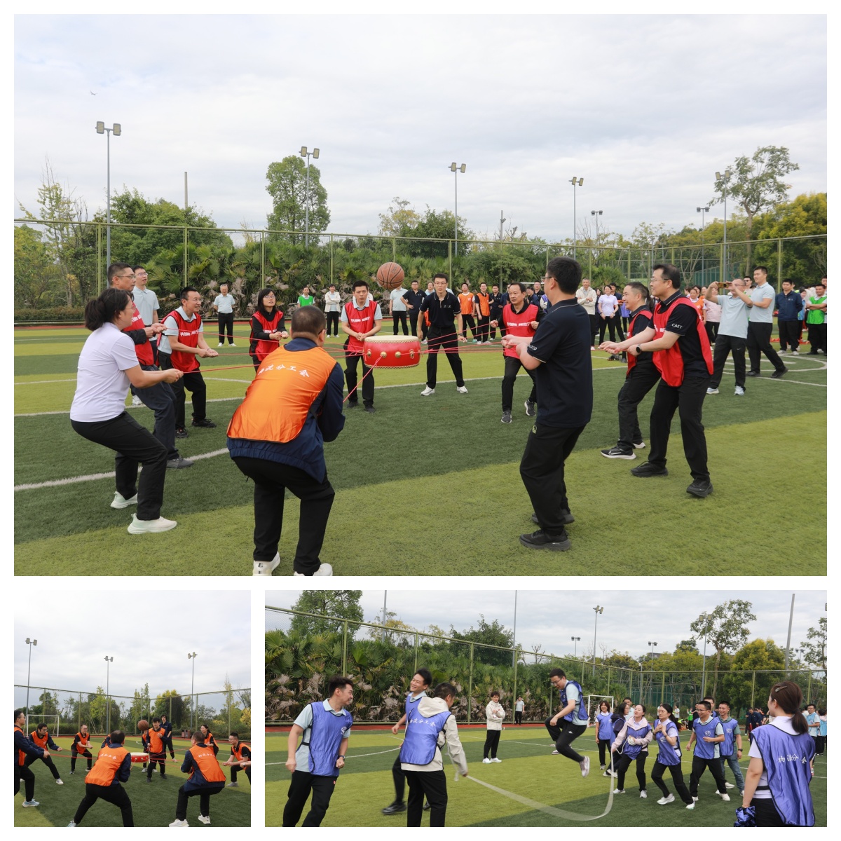 工间操展示告一段落后,大家于秋日的宁谧中暂歇,尽享一段悠闲自在的慢时光。午后,活动主舞台移至新津明珠公园运动场。一场集趣味与挑战于一身的“运动擂台赛”瞬间点燃全场热情。各类比赛项目轮番上阵,既有竞技的酣畅,亦不乏互动的欢愉。场上队员全力以赴、默契协作;场边助威声、笑语声此起彼伏,将活动的热烈氛围一次次推向高潮。