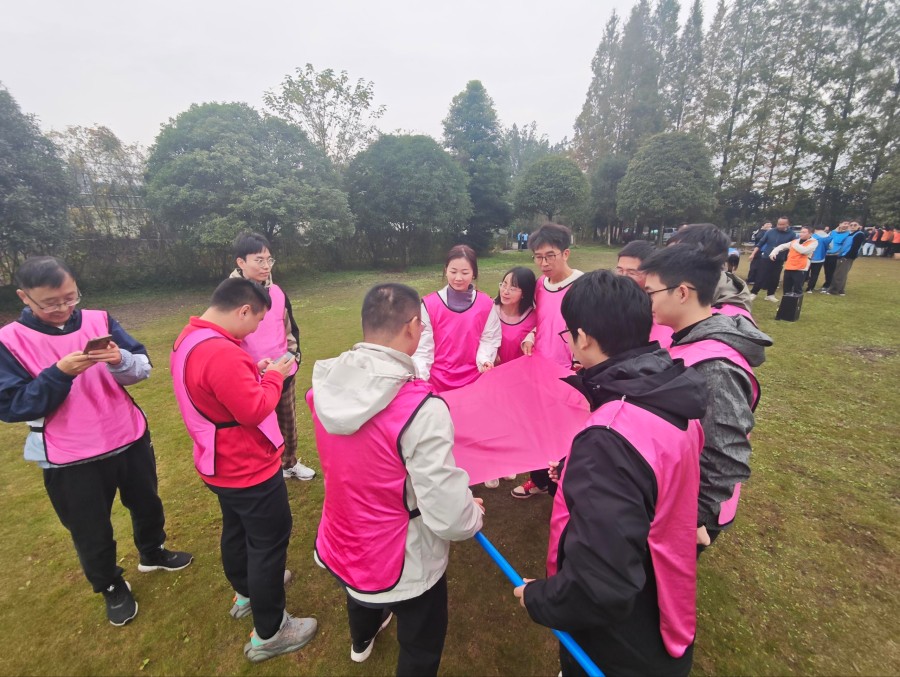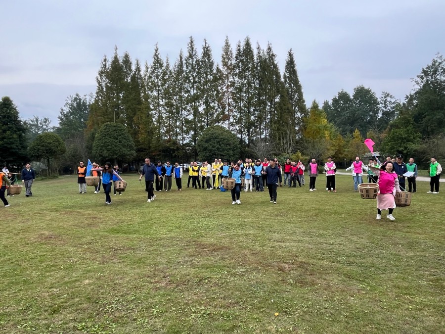 抵达目的地后,“破冰分组”迅速点燃现场氛围。各小组紧扣“科技自立自强 创新自主自信”企业精神开展创意构思,将企业精神融入队名标识,团队活力与默契初步显现。随后秋收运动会拉开战幕,“推车囤粮”“扁担接力赛”“果蔬连连看”等趣味项目接连上演,队员们全力以赴,加油声与欢呼声交织成趣,把工作中的“敢拼敢闯”劲头转化为竞技场上的澎湃动能。
