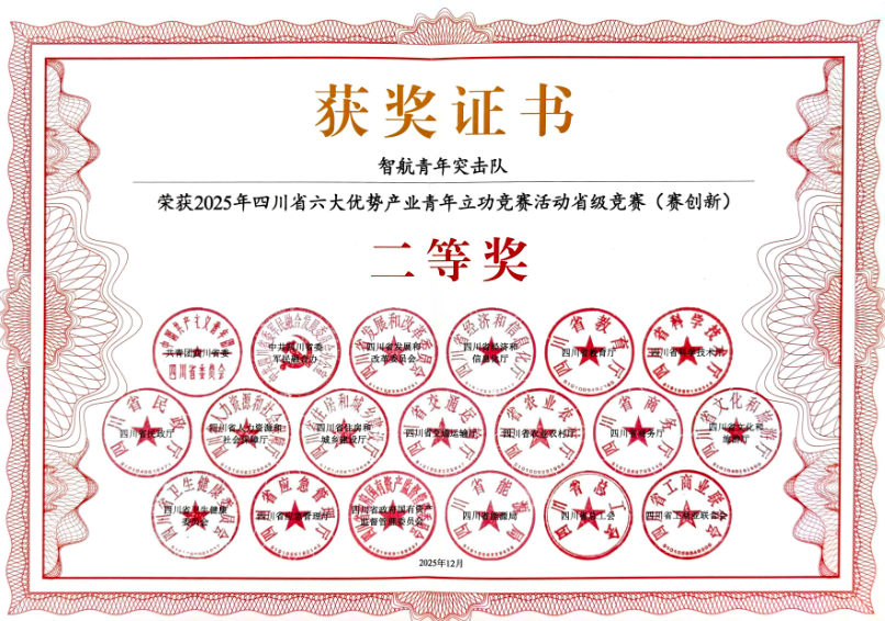 这份荣誉,既是对智航青年突击队长期以来坚守初心、专注创新的高度认可,也是对团队组织力、凝聚力与战斗力的全面检验。展望未来,智航青年突击队将继续发扬“创新争先、攻坚克难”的优良作风,以此次获奖为新的起点,以更加饱满的热情与坚实的步伐,全力投身于智慧物流技术研发与产业应用之中,为推进行业进步与服务四川现代化产业体系建设贡献更多青春智慧与力量。