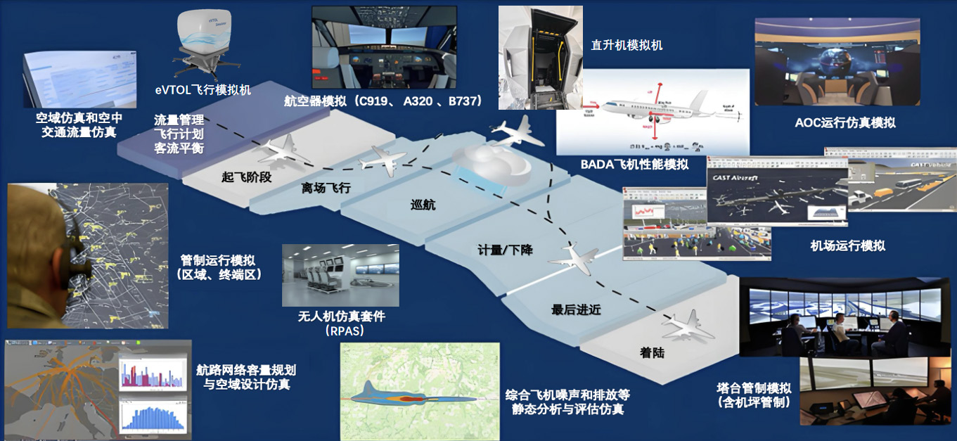 国内首个、全球第三个民航生产运行全流程仿真平台:民航生产运行全流程仿真平台是智慧民航建设的关键基础设施。民航科技创新示范区建设的民航生产运行全流程仿真平台是国内首个、世界第三个覆盖民航生产运行全链条的数字化仿真系统。通过虚拟仿真技术构建了“门到门”全流程仿真环境,集成机场、空管、航司、低空等多主体的运行数据,围绕航路导航与通信监视一体化、机场全域立体协同运行与精准控制、机场服务与作业无人化、机场终端区一体化运行、有人无人航空器融合运行,空管、航司、机场一体化智慧协同运行服务、适航性设计、适航符合性验证、航空器事件调查与应急保障等关键技术,构建了航班运行全流程中的关键核心技术装备研发环境以及体系化验证环境,同时可支撑多主体角色沉浸式协同培训服务。
