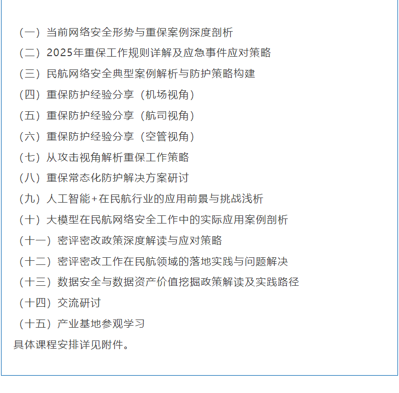 民航二所关于举办“全国民航网络安全应急能力提升及人工智能行业应用研讨班暨第九届全国民航网络安全培训班”的通知