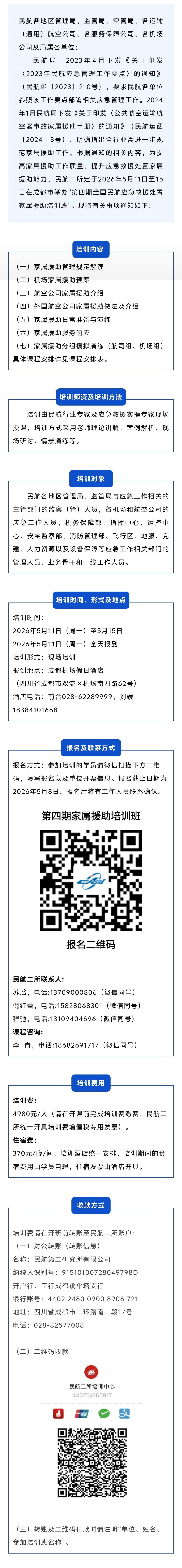 民航二所关于举办“第四期全国民航应急救援处置家属援助培训班”的通知